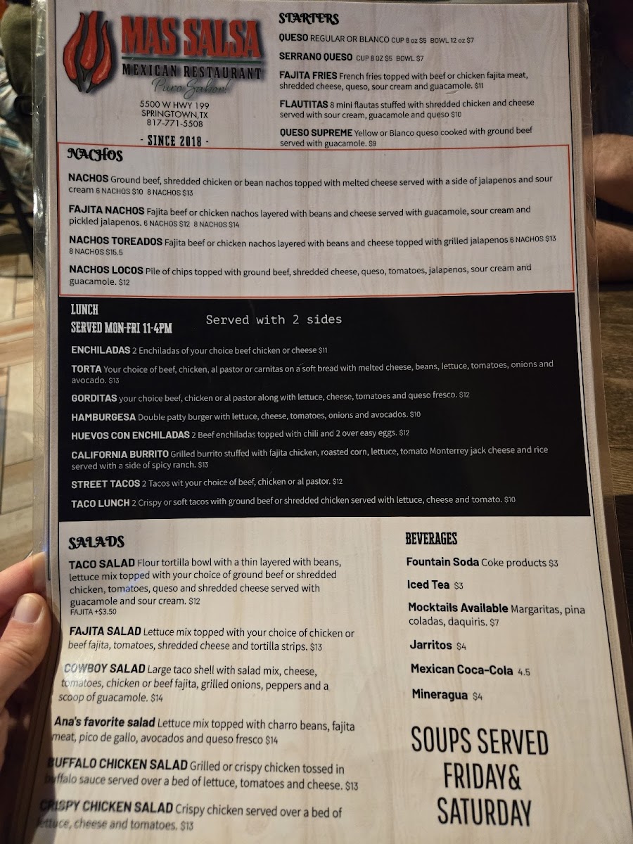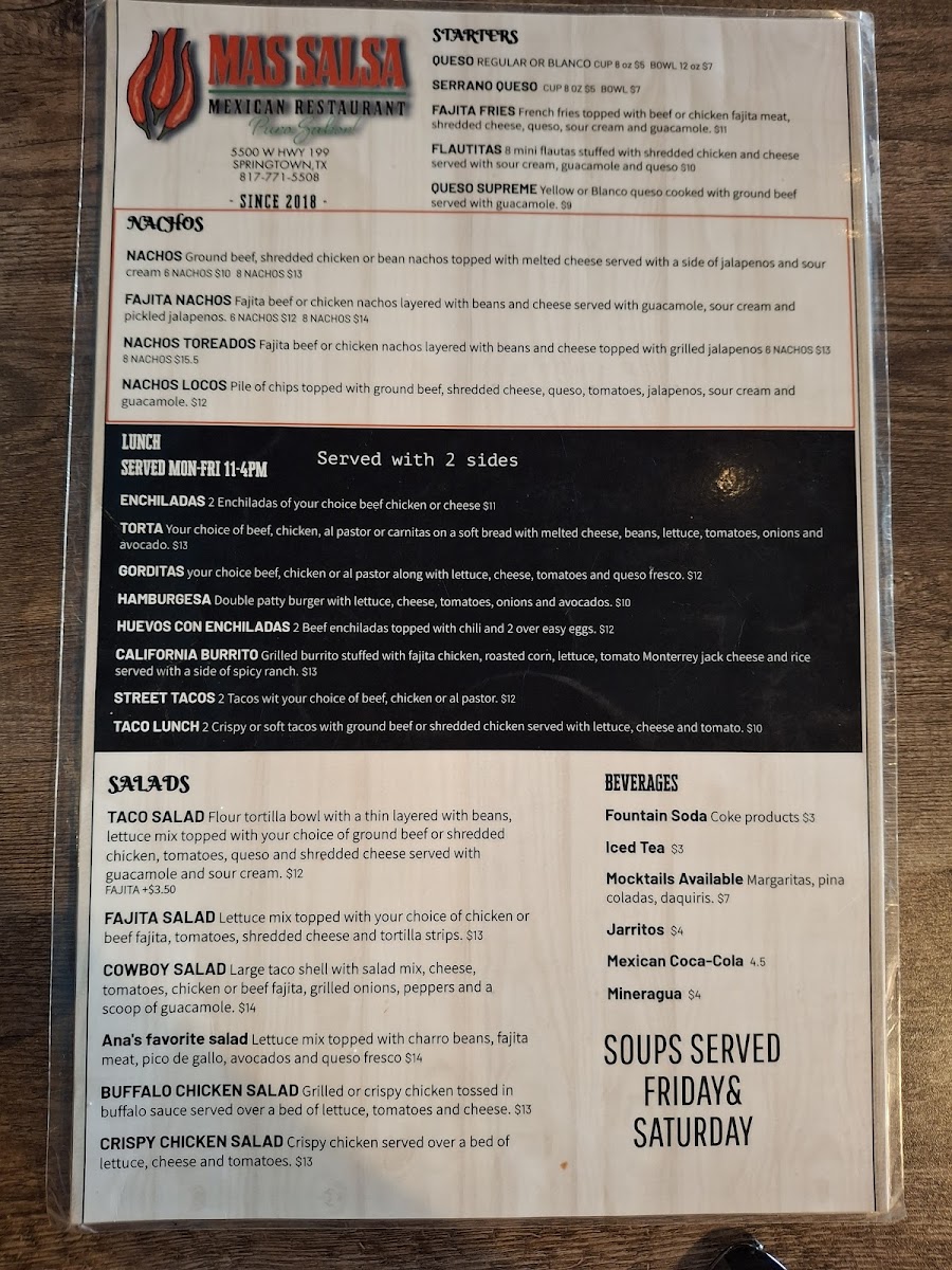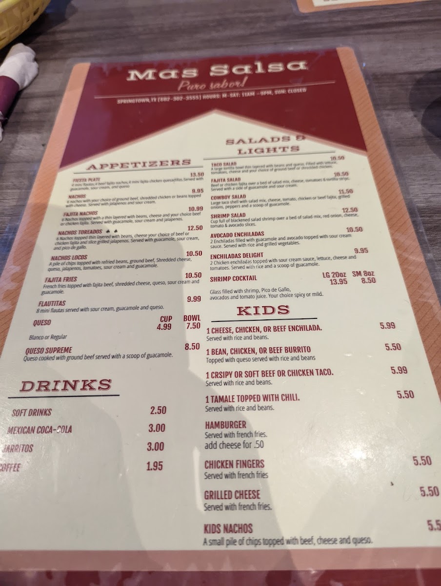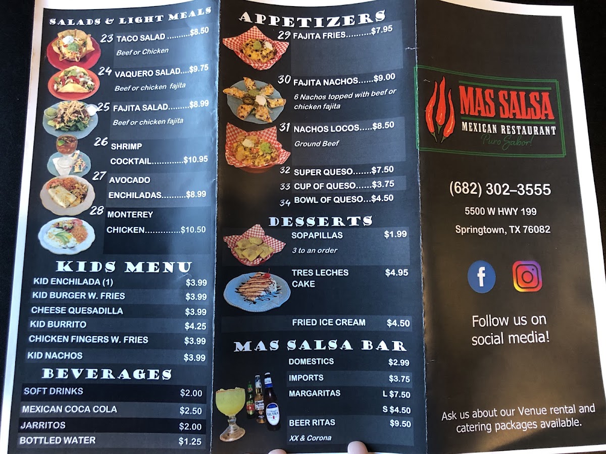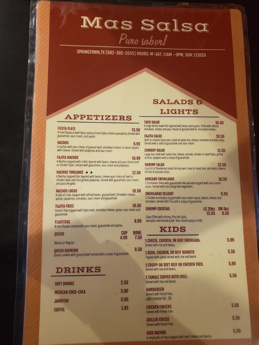 Mas Salsa Tex Mex Restaurant Menu